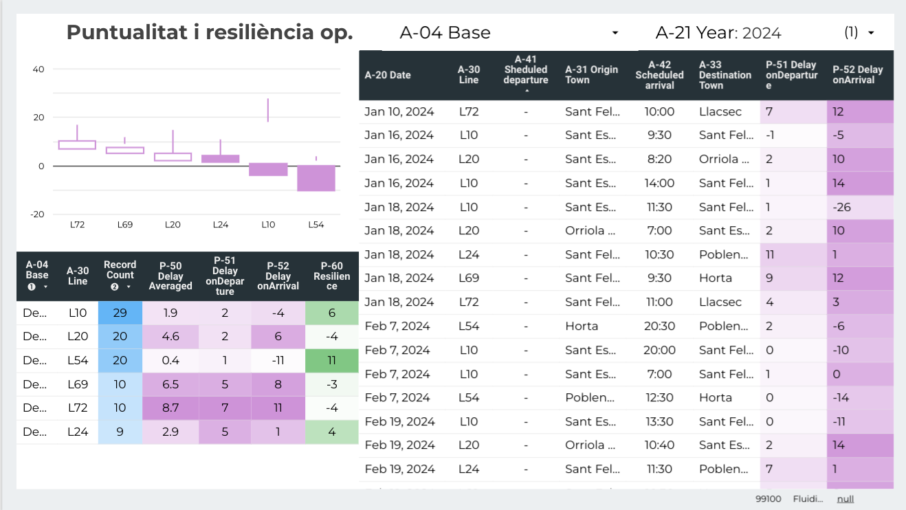 Visualitza de forma gràfica la puntualitat dels serveis regulars i segueix en temps real les incidències relacionades amb el parc mòbil.